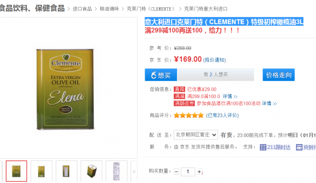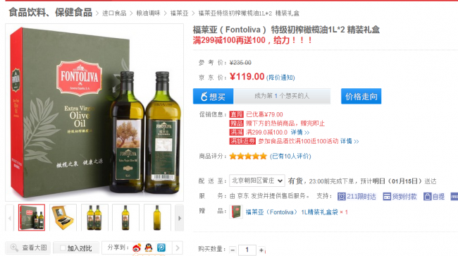 目前京東商城正在進行進口橄欖油專場促銷活動,力度為滿299-100,還可以疊加之前食品返的兩張滿199-50元東券,相當于滿299-150,相當于半價的節(jié)奏了,手里有東券的親快來買油,不少橄欖油好好湊單可低至15元/L。