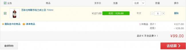 京東127元,甩進(jìn)購物車99元包郵,其它網(wǎng)站貴20元以上。
