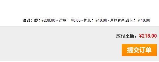 蘇寧報價238元,下單立減10元,再疊加10元的云券,實付218元。