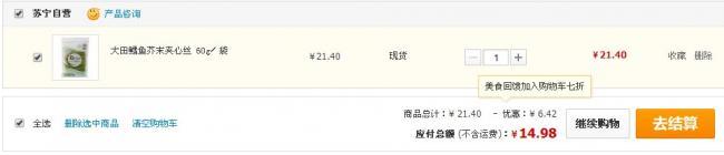 原價(jià)21.4元,下單7折,實(shí)付14.98元,1號(hào)店19元,亞馬遜19.8元。
