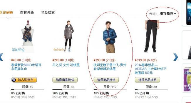 亞馬遜Z秒殺報(bào)價(jià)299元包郵,在 秒殺頁(yè)面 服飾箱包 分類(lèi)找到并加入購(gòu)物車(chē),再次特價(jià),適合上次沒(méi)搶到的同學(xué)購(gòu)買(mǎi)。