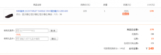 今日優(yōu)購(gòu)網(wǎng)斷碼特價(jià)170元,可領(lǐng)取沒(méi)得比提供的30元現(xiàn)金券,實(shí)測(cè)下單實(shí)付140元包郵到手,僅36、36.5兩碼可選,同款亞馬遜中國(guó)報(bào)價(jià)220元。