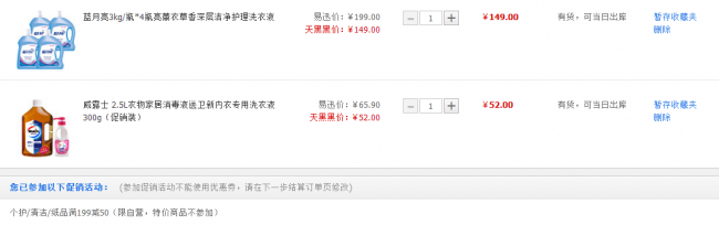 易迅網(wǎng)上海站天黑黑報價149元,可以和這件報價52.8元的威露士 2.5L衣物家居消毒液送衛(wèi)新內(nèi)衣專用洗衣液 300g一起湊單,參加滿199-50的活動,實付150.8元,合計12KG洗衣液+2.5L消毒液不想湊單消毒液的可以湊單紙巾,特別強調(diào),今天易迅天黑黑上海站紙巾特價多,還可以滿199-50!
