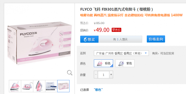 易迅華南地區(qū)售價49元包郵,其他渠道85元。