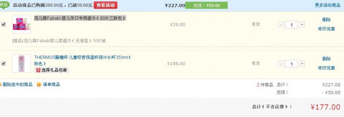目前售價(jià)198元,歷史新低,可參加200-50的活動(dòng),與29元的范兒萌Fababi-嬰兒手口專用濕巾(80片三聯(lián)包)一起購(gòu)買,實(shí)付177元到手,折合這個(gè)杯子154元左右,很不錯(cuò)的價(jià)格。寶媽或萌妹紙可以考慮入一個(gè)。