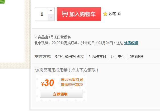 1號店29.8元?,F(xiàn)購買這個超值套裝(500g+300g)的*2一個29.8元和超值套裝的*1兩個39.8元,總計69.8元,配合該頁面的滿60-30元券(產(chǎn)品下方),總共3200g洗手液39.8元,合6.2元/500g。