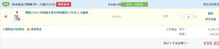京東目前售價(jià)49.9元,參加買三免一,下單3瓶實(shí)付99.8元包郵,合33.27元/瓶、9.5元/L,這款除菌液降到10元左右就是好價(jià),需要的朋友可以囤一些,省的到超市買完還要自己提回來(lái)。