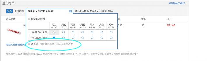 易迅北京倉(cāng)目前7.1元在售,可參加滿(mǎn)68減30元活動(dòng),可以直接加入10件到購(gòu)物車(chē),71-30=41元,折合下來(lái)每條4.1元,,大家可以結(jié)算時(shí)選擇經(jīng)濟(jì)送包郵,不支持經(jīng)濟(jì)送的朋友可以湊單至49包郵。