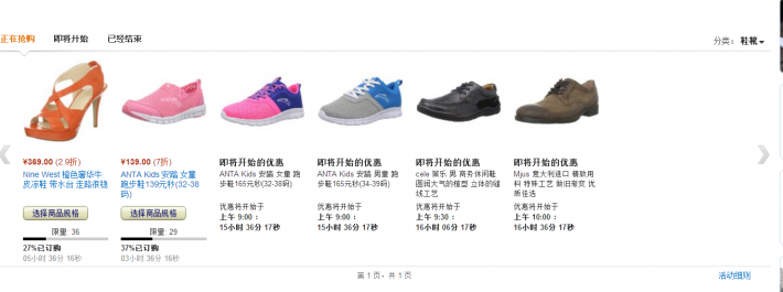現(xiàn)在亞馬遜中國(guó)z秒殺玖熙涼鞋報(bào)價(jià)369元包郵,算是國(guó)行好價(jià)了某寶都要500以上。需進(jìn)入分秒必爭(zhēng)平臺(tái) 鞋靴 分類找到,顏色比較靚麗,夏天穿應(yīng)該很fashion!
