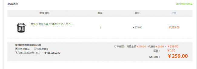 蘇泊爾電壓力鍋CYSB50YC3C-100 5L 雙膽飛飛商城特價(jià)279元,還可領(lǐng)取meidebi.com提供的199-20優(yōu)惠券,券后259元包郵。同款京東349,蘇寧459.
