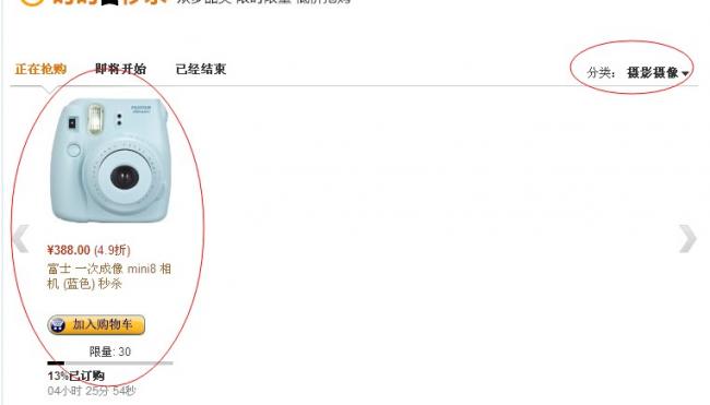 亞馬遜 Z秒殺報(bào)價(jià)388元包郵,在 秒殺頁面 找到 攝影/攝像 并直接加入購物車才能以搶購價(jià)購買,和膠片邊框貼紙,一起加入購物車即可免費(fèi)得,這次藍(lán)色特價(jià)了。