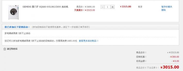易迅網(wǎng)報(bào)價(jià)3315元,滿3000-300,下單立減300元,實(shí)付3015元包郵,比上次推薦時(shí)降了84元,限華北,有需要的同學(xué)可以看看。