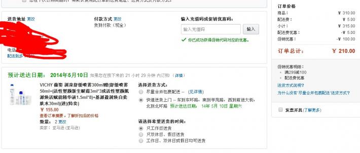 亞馬遜中國(guó)目前報(bào)價(jià)155元,跟小伙伴湊單買(mǎi)2份輸入優(yōu)惠碼8HPO2XNS可減100,實(shí)際支付210元,合105元/份。另外附贈(zèng)50ml中樣噴霧,30ml柔膚水,3包小樣的眼霜或者8包精華。其他渠道目前單買(mǎi)噴霧都要100+。