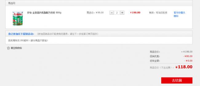 易迅網(wǎng)華東華中地區(qū)99元在售,還可參加今天給力的百貨滿180減80元活動(此活動,每個賬號只能參加一次),湊單滿減后低至59元/罐,例如直接兩罐就剛好滿減了,價格方面是非常不錯了,之前也買幾罐給家里人過,想補貨了,尤其端午節(jié)到了,可以送給父母。