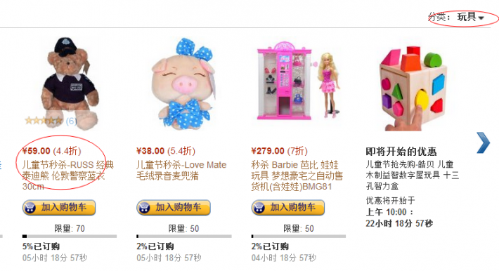 提示:需要進(jìn)入Z秒殺,選擇玩具找到此款商品加入購物車即可
