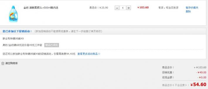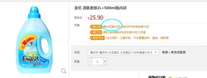 易迅重慶倉售價25.9元,參加滿99元減49元,合13.65元/桶,其他電商售價都在22元以上且沒有加量的500ml。