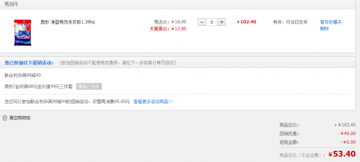 華南天黑黑價12.8元,還參加99-49活動,一次購買8減,滿減后實付53.4元,折合6.675元每件,比前段時間180-80便宜。