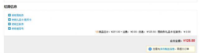 蘇寧易購目前251元,下單5折,實付125.5元包郵,近期不錯的價格,如果手頭還有什么手機碼之類的話,價格應該還能更低。限區(qū)域有貨。