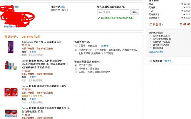 中國(guó)亞馬遜報(bào)價(jià)99元,參加520愛(ài)你表情義 情趣用品專場(chǎng) 滿99-30促銷活動(dòng),將60元的大禮包、15元的至尊超薄2片裝,30元的人體潤(rùn)滑液 4ml,一起加入購(gòu)物車,結(jié)算時(shí)輸入優(yōu)惠碼:“IIITXQNU”,實(shí)付69.1元包郵,相當(dāng)劃算了。