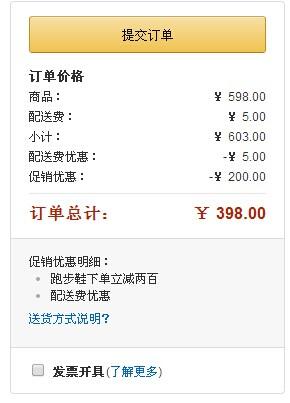 中國亞馬遜報價598元,參加自營 跑步鞋 下單減200 促銷活動,結(jié)算時用碼“RUNNING200”,實付398元包郵,近期好價,適合慢跑練習(xí)及日常穿著,能提供主要的性能與適量的穩(wěn)定。