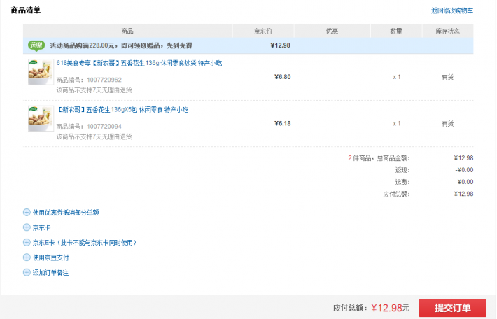 京東秒殺價(jià)6.18元,只需要湊單滿7元即可包郵,可考慮湊單同是6.18元的136g花生即可包郵,到手折合7.57元/斤,新農(nóng)哥的牌子真心好價(jià)了,手慢沒貨!