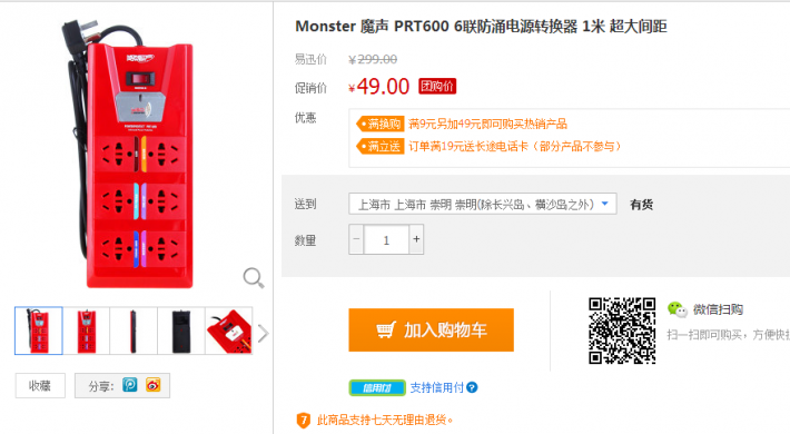 Monster 魔聲 PRT600 6聯(lián)防涌電源轉(zhuǎn)換器,實(shí)際上它的老本行還是跟聲學(xué)設(shè)備相關(guān)的高檔線材,插線板就是其中一種。此款是姚明代言(上面有“yao明”的標(biāo)記和他的大頭),采用陶瓷外殼MOVs提供卓越的防火保護(hù),內(nèi)置Monster Dual Mode Plus能夠保護(hù)設(shè)備免受最強(qiáng)大的尖峰電壓的破壞,它能夠自動(dòng)斷開(kāi)連接設(shè)備以使其免受破壞,同時(shí)發(fā)出報(bào)警聲,它包含6個(gè)帶保護(hù)的電源插口及1米電源線。適用于辦公電腦排插用。