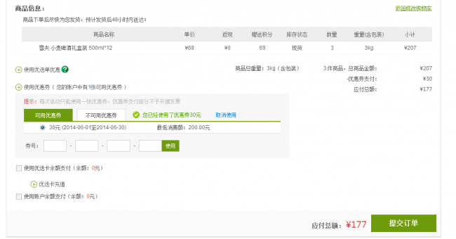 順豐優(yōu)選又有貨了,69元一組12只,購買三組的話,剛好可以使用200-30的優(yōu)惠券。最終實(shí)付177元,平均下來4.9,不到5元。根據(jù)評價,反映不錯,怎么說也是符合德國啤酒的釀造規(guī)則嘛。至少不會出現(xiàn)玉米、淀粉、大米等其他配料。需求不大的話估計(jì)足以喝一個夏天了吧!