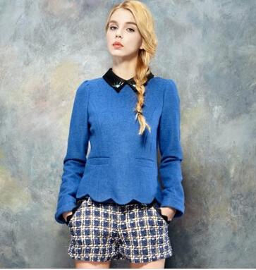 妖精的口袋 玻璃將軍 2013新款冬裝 花瓣擺釘寶石羊毛套裝 1331065 海港藍 ,這款套裝報價329元,可以參加滿400-200,湊單下來不到200元,更是好價。