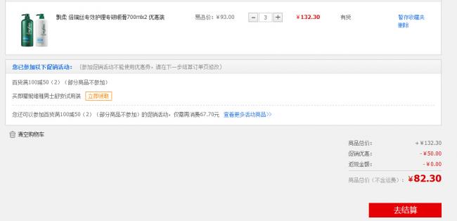 目前此款商品今日易迅網(wǎng)報(bào)價(jià)44.1元,可以參加每滿100-50的活動(dòng),湊單下來(lái)實(shí)付82.3元,可以做到27.4元/件, 歷史低價(jià)了,有需要的朋友可以看看,湊單合適。