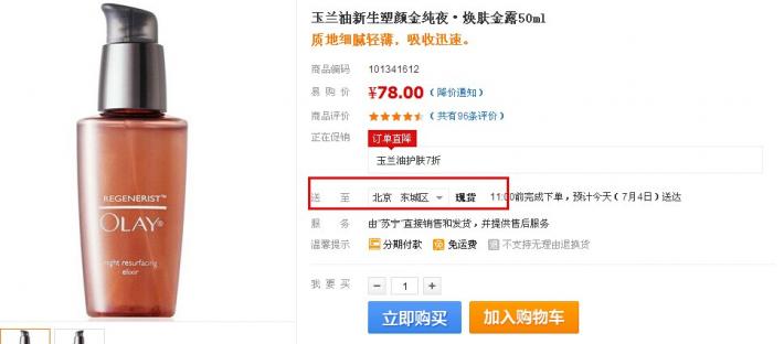 蘇寧易購華北地區(qū)目前報價78元,加入購物車7折之后實際支付54.6元包郵,相比其他B2C渠道200多的報價,此價格算是小神價了,需要的妹子可速度入手,記得此款晚上用哦。