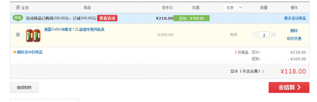 目前京東商城兩瓶報價109元,雖然價格上漲,但是參加滿200-100后,2瓶59元,折合每瓶29.5元。