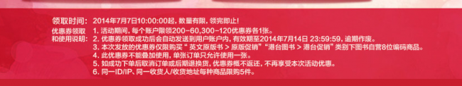 京東開始發(fā)放了進口原版圖書券,力度為滿200-60元和滿300-120元,優(yōu)惠券可以用于購買英文原版書下的原版促銷、以及港臺圖書下的促銷。數量有限,先領了再說!