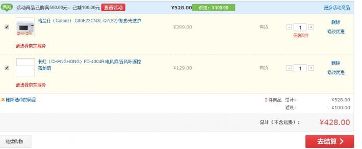 例如可以和這款報(bào)價(jià)129元的長虹(CHANGHONG)FD-4004R 電風(fēng)扇/五風(fēng)葉遙控落地扇湊單,滿減下來實(shí)付428元包郵。