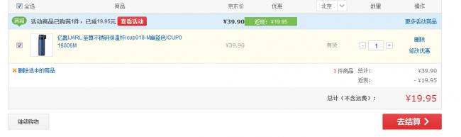 兩色可選,炫動(dòng)銀光系,售價(jià)19.95元(加入購(gòu)物可見) 億嘉IJARL這款至尊不銹鋼icup018-M保溫杯,實(shí)屬白菜價(jià),本身售價(jià)39.9元,價(jià)格還不錯(cuò),加入購(gòu)物車再5折,實(shí)付19.95元,有需要的入吧。