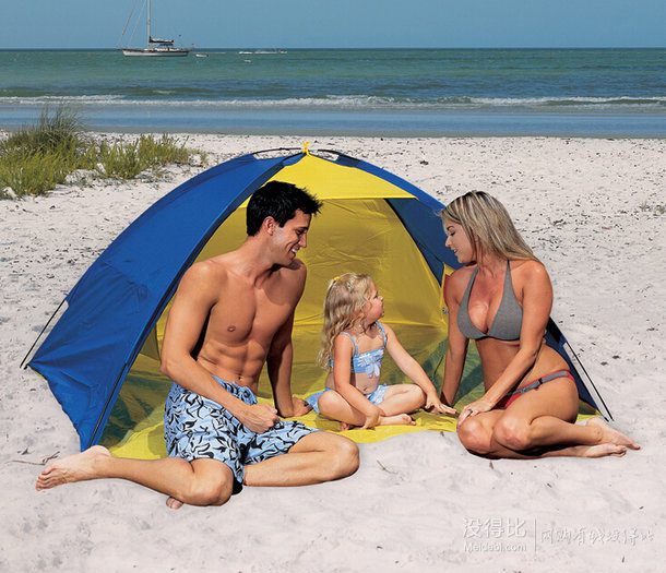 Bestway 67278 雙人海灘帳篷,尺寸200cm*130cm*90cm,滌綸兩根玻璃纖維支架,PE底部,內(nèi)置帳門可容納兩人容易安裝,方便攜帶通風(fēng)性能良好,適宜沙灘度假。