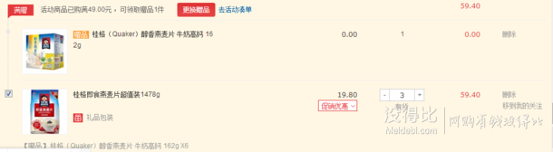 買三份滿49還可領(lǐng)取贈品1件 贈品也是 桂格(Quaker)醇香燕麥片 牛奶高鈣 162g