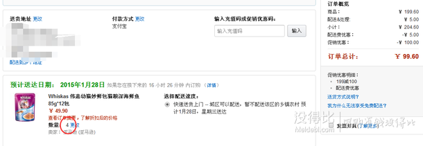 目前亞馬遜售價¥49.9,參加食品酒水滿¥199-100的活動,湊單或者一次購買4件,使用優(yōu)碼199G100OFF,滿減后實付¥99.6包郵,折合¥24.9/件,同款蘇寧最低¥45。
