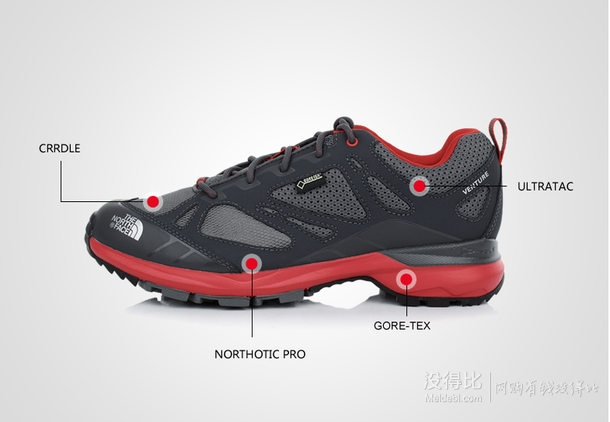 不到500塊的GORE-TEX,The North Face 樂斯菲斯 男士GORE-TEX防水徒步鞋,屬于2014年春夏新款,采用耐磨透氣的網(wǎng)布鞋面,GORE-TEX防水透氣內(nèi)襯,在不同氣候條件下都能保持雙腳干爽舒適。Northtic Pro 2.0鞋墊,模壓EVA中底,提供良好地緩沖,后跟采用CARDLE技術(shù),確保腳步著地方式符合人體解剖學(xué),吸收沖擊、穩(wěn)定足部,UltraTAC輕型橡膠外底,不論干濕路面都能良好抓地,防滑耐磨。