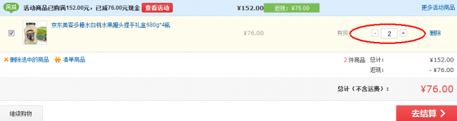 美客多黃桃罐頭,最低14.5一瓶,京東報價76一箱,4瓶,但是買兩箱免一箱,合計買一箱送一箱,合9.5一瓶,京東自營,送貨上門,優(yōu)勢明顯!