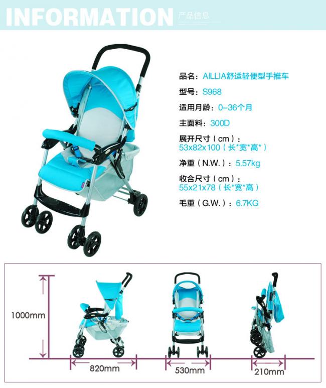 愛麗兒寶貝AILLIA經(jīng)濟舒適型嬰兒推車湖藍色S968,藍、紅、黃三色可選,299元,參加266-100活動,實付199元。