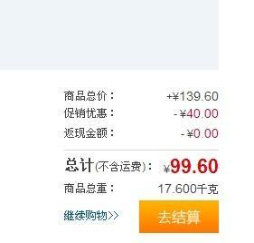 易迅網(wǎng)華東地區(qū)目前售價34.9元,參加滿139減40促銷活動,買4份滿減后實付99.6元包郵。折合4.98元/KG。需要注意的是,有網(wǎng)友提示說瓶子可能會破損,建議付款前先驗貨。