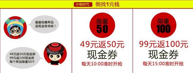 商品售價49元,反50現(xiàn)金券(紅券),10:00開搶,限量50個。