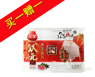 三全 狀元清翠薺菜豬肉精品水餃 702克/袋,買一送一,用券后14.9元包郵