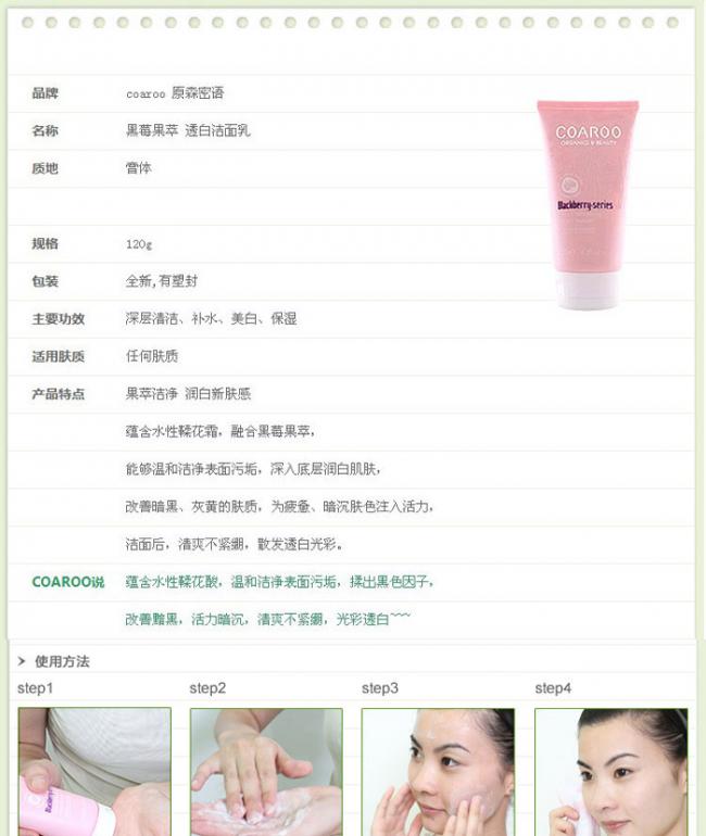 原森密語COAROO黑莓果萃4件套水/乳/霜/潔面美白抗氧化補水-為為價:¥109.00-為為網(wǎng)