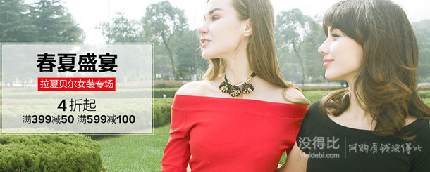 拉夏貝爾女裝 低至4折起 免費領10元無門檻券+滿399減50等+包郵
