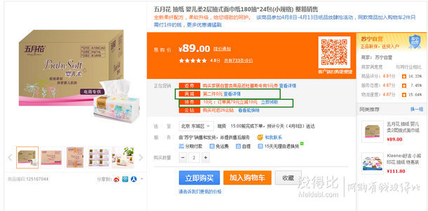 五月花嬰兒柔2層抽式面巾紙采用獨(dú)特纖細(xì)起皺工藝,點(diǎn)對(duì)點(diǎn)中控縮水層技術(shù),不刺激皮膚,不致敏,顏色自然,不含增白劑,為天然原生木漿生產(chǎn),特別適合寶寶使用。小編經(jīng)常買這個(gè)系列,原因就是比較柔軟,用來擦鼻子比較舒服。這款是小規(guī)格短幅的,24包整箱銷售。