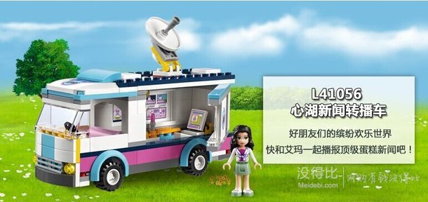 LEGO 樂高 好朋友系列 心湖新聞轉(zhuǎn)播車41056,包括278個(gè)顆粒,還原了在心湖新聞車上披露全世界最好的蛋糕這一大事件的場(chǎng)景;幫助艾瑪在梳妝臺(tái)前做好準(zhǔn)備,以便她在鏡頭中呈現(xiàn)出最美麗的一面。讓她坐在新聞桌前講述蛋糕的故事,由安德魯為她拍攝,然后向觀眾播送天氣預(yù)報(bào);配備艾瑪和安德魯迷你玩偶人物。
