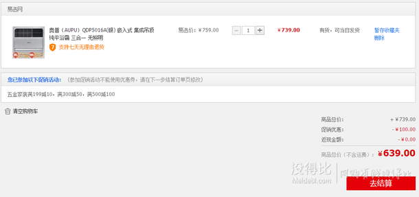 易迅網(wǎng)目前報價739元,參見滿減,下單實付639元,近期好價,同款其他渠道均報價739元,有需要的可以看下。
