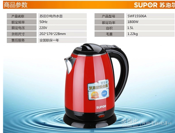 SUPOR 蘇泊爾 SWF15S06A 電熱水壺,國美蘇泊爾官方旗艦店報(bào)價(jià)69元,歷史底價(jià),如果一次買3個(gè),店鋪首頁還有199-10優(yōu)惠券,同款蘇寧蘇泊爾旗艦店105元。