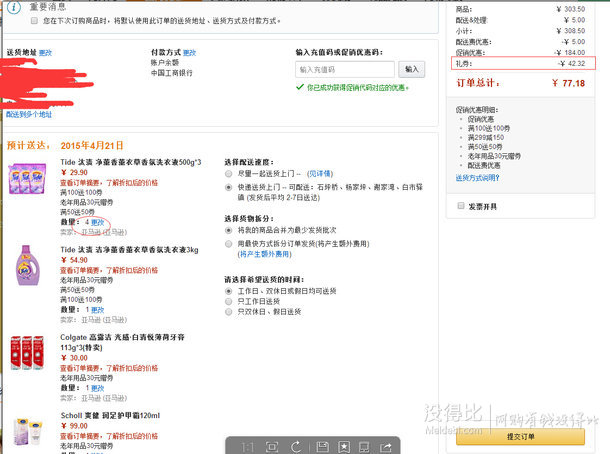 目前此款商品Z秒殺售價(jià)65元,可以以原價(jià)99元湊單參加滿299減150的活動(dòng),例如湊單1售價(jià)54.9元的Tide 汰漬 潔凈薰香薰衣草香氛洗衣液3kg和4件售價(jià)29.9元的Tide 汰漬 凈薰香薰衣草香氛洗衣液500g*3,售價(jià)30元的Colgate 高露潔 光感?白清悅薄荷牙膏113g*3(特賣),結(jié)算時(shí)輸入優(yōu)惠碼QY7CYN4LCT,實(shí)付117.18元包郵,限量搶購(gòu),手慢無(wú)!